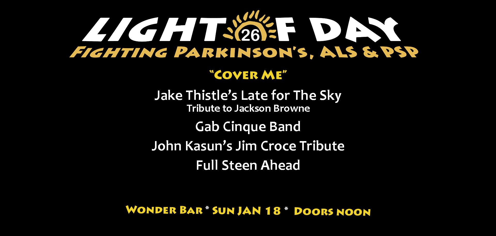 Light of Day would like to thank all of the performers who have dedicated their talents for supporting our fight against Parkinson's.