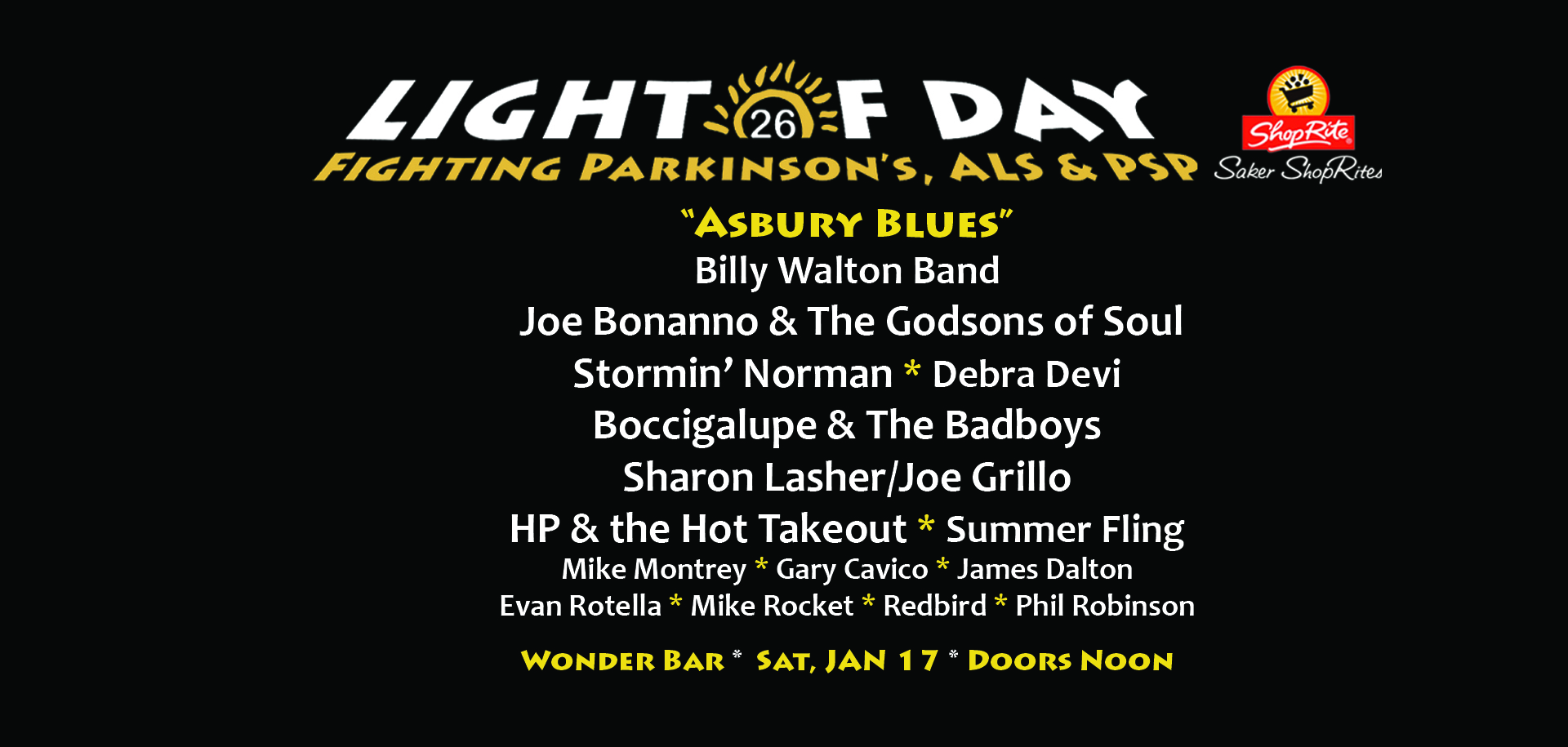 Light of Day would like to thank all of the performers who have dedicated their talents for supporting our fight against Parkinson's.