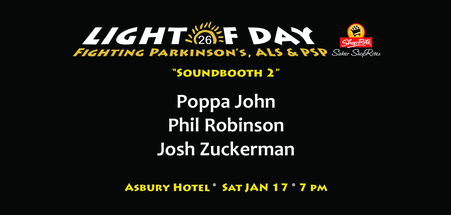 Light of Day would like to thank all of the performers who have dedicated their talents for supporting our fight against Parkinson's.
